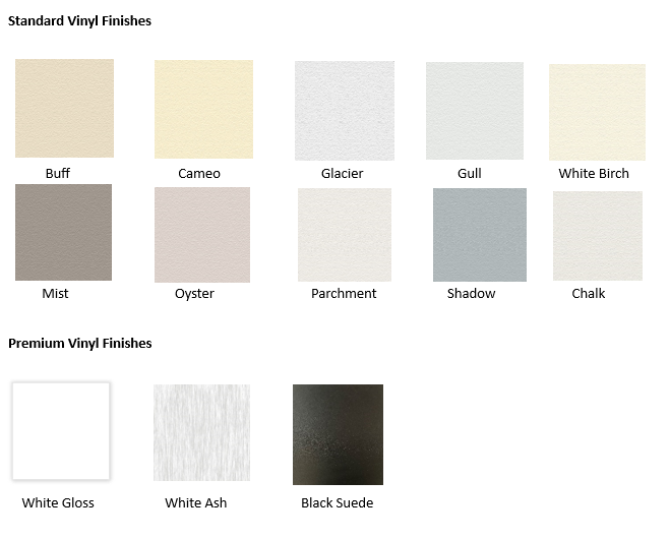 Available for inserts with mirror, vinyl, translucent, painted glass and gyprock.